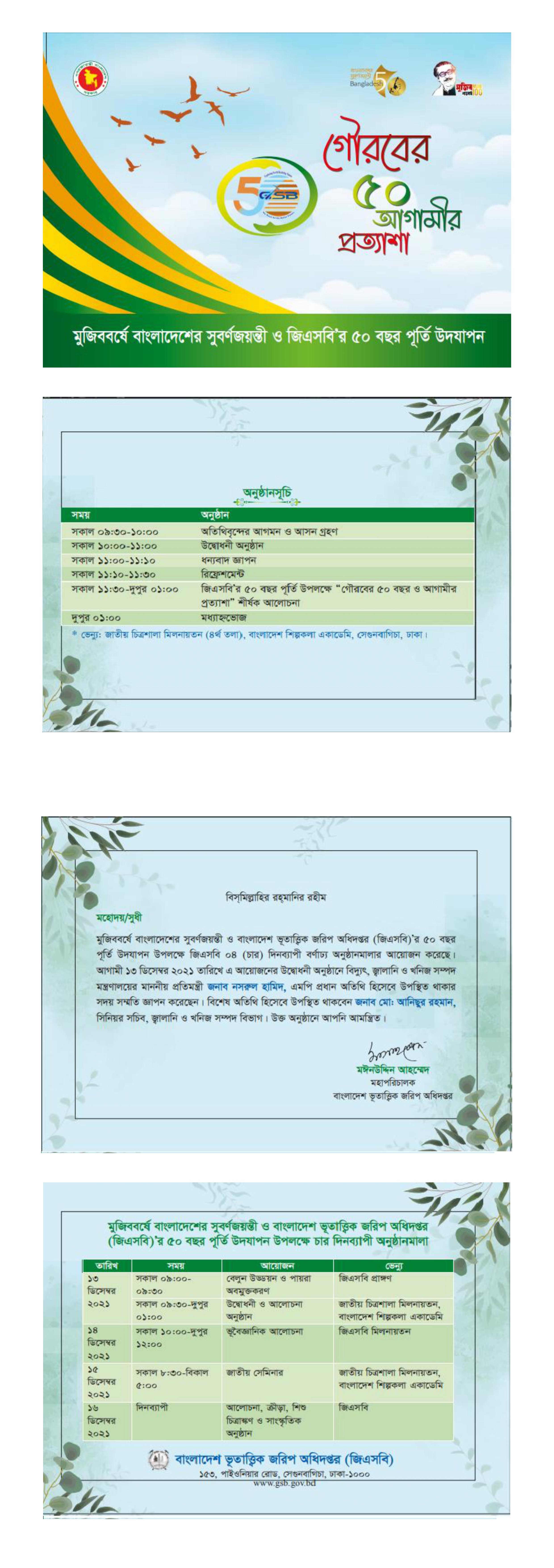 বাংলাদেশের সুবর্ণজয়ন্তী ও জিএসবি’র ৫০ বছর পূর্তি উদযাপন