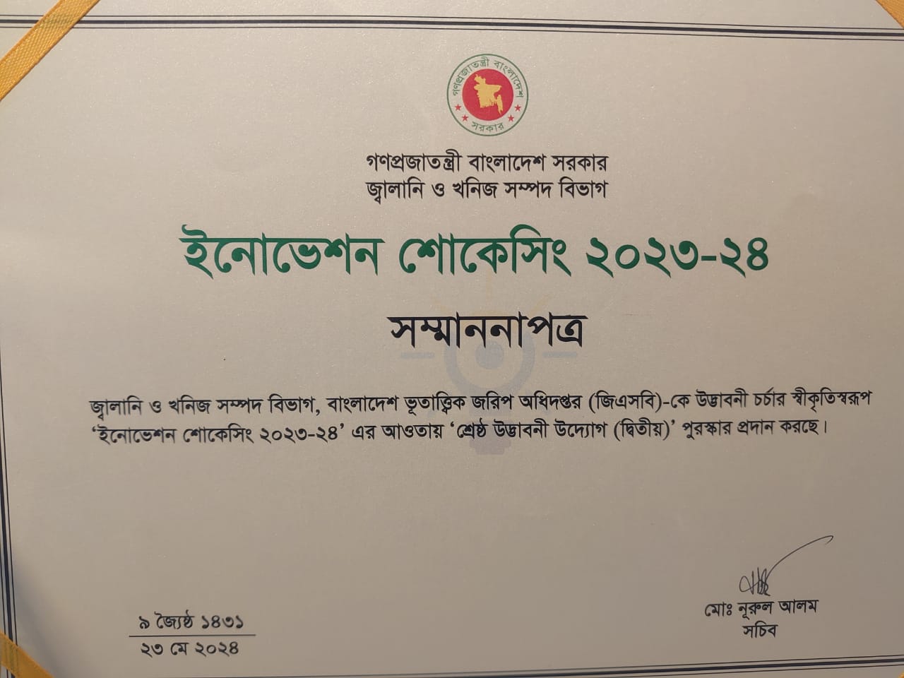 ইনোভেশন শোকেসিং ২০২৩ - ২৪ এ জিএসবি’র দ্বিতীয় স্থান অর্জন