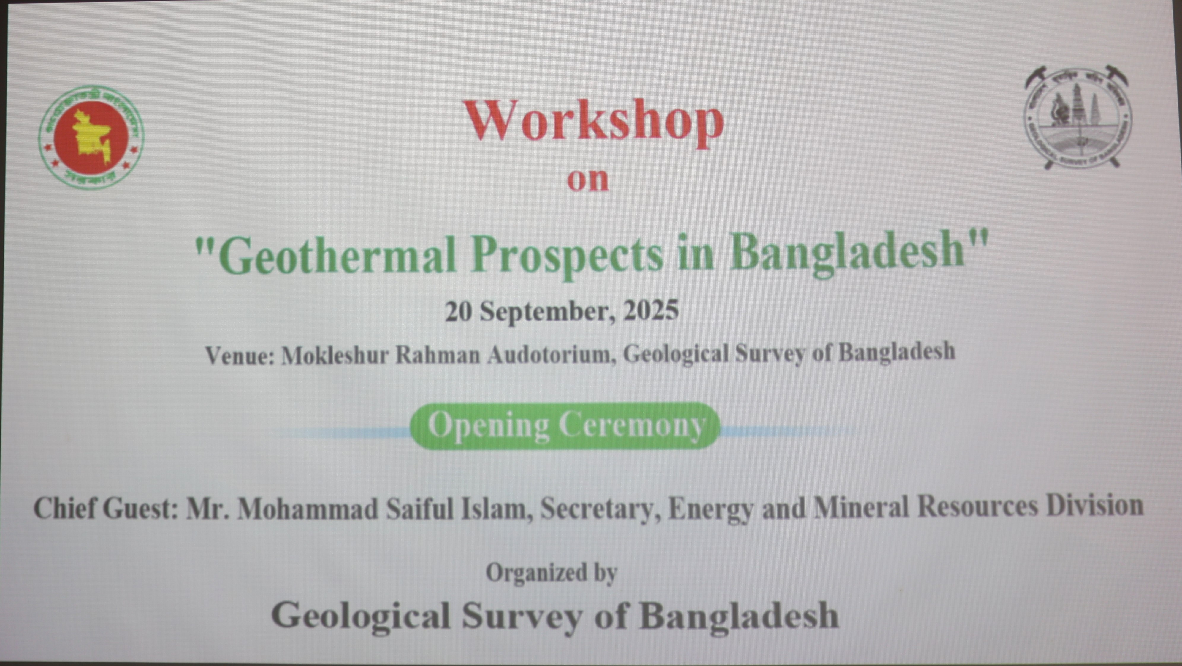মাননীয় সচিব মহোদয়ের উপস্থিতিতে "Geothermal Prospects in Bangladesh" শীর্ষক ওয়ার্কশপ অনুষ্ঠিত