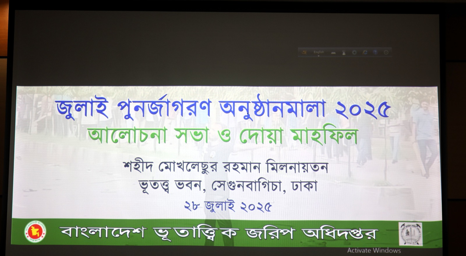 জুলাই পুনর্জাগরণ অনুষ্ঠানমালা ২০২৫ উপলক্ষ্যে জিএসবি কর্তৃক গৃহীত কার্যক্রমের স্থিরচিত্র